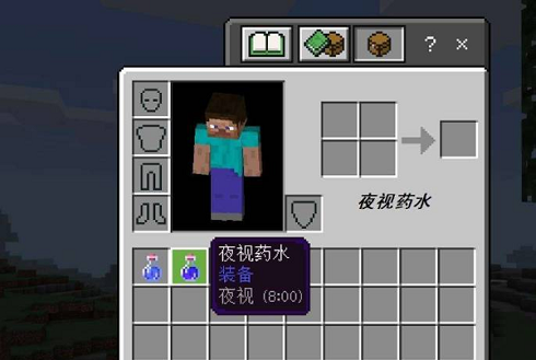 2、要想前往海底神殿,需要准备夜视药水,建议准备三瓶左右,最好是五瓶。