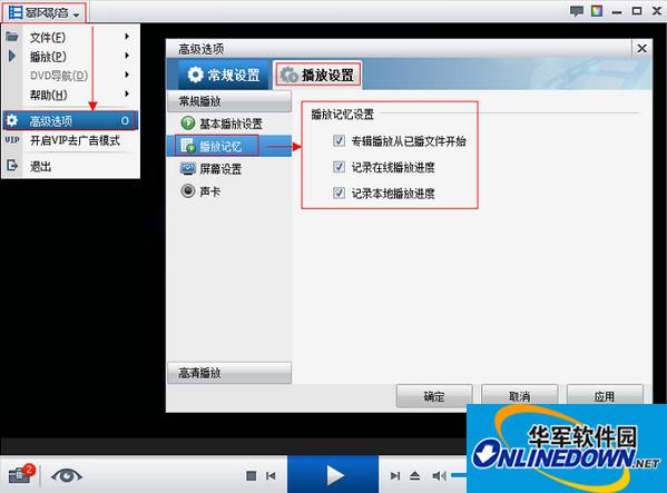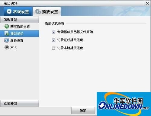 5、打开后,把界面中的“记录本地播放进度”前面的勾打上,并按确定退出即可完成播放进度记忆工作。