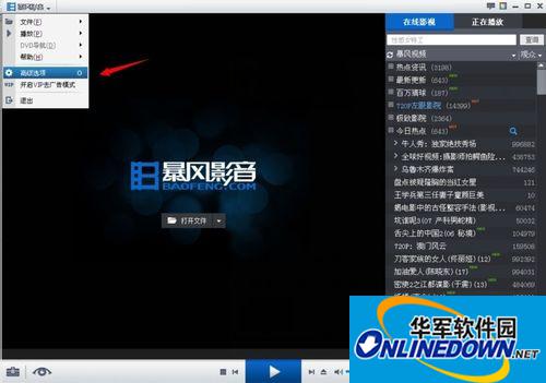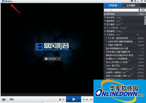1、打开暴风影音后,我们点击界面中顶部最左侧的那个“暴风影音”字样的图标。