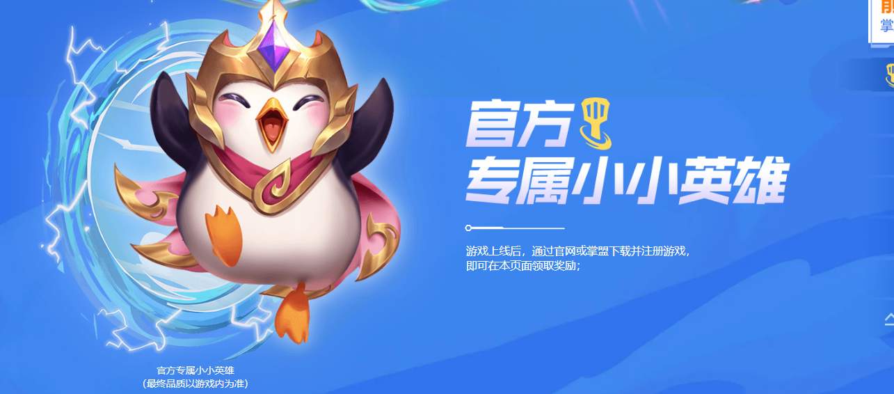 官方专属的小小英雄如下图所示,是非常可爱的粉色企鹅。想要获取这个小小英雄首先要完成游戏预约。
