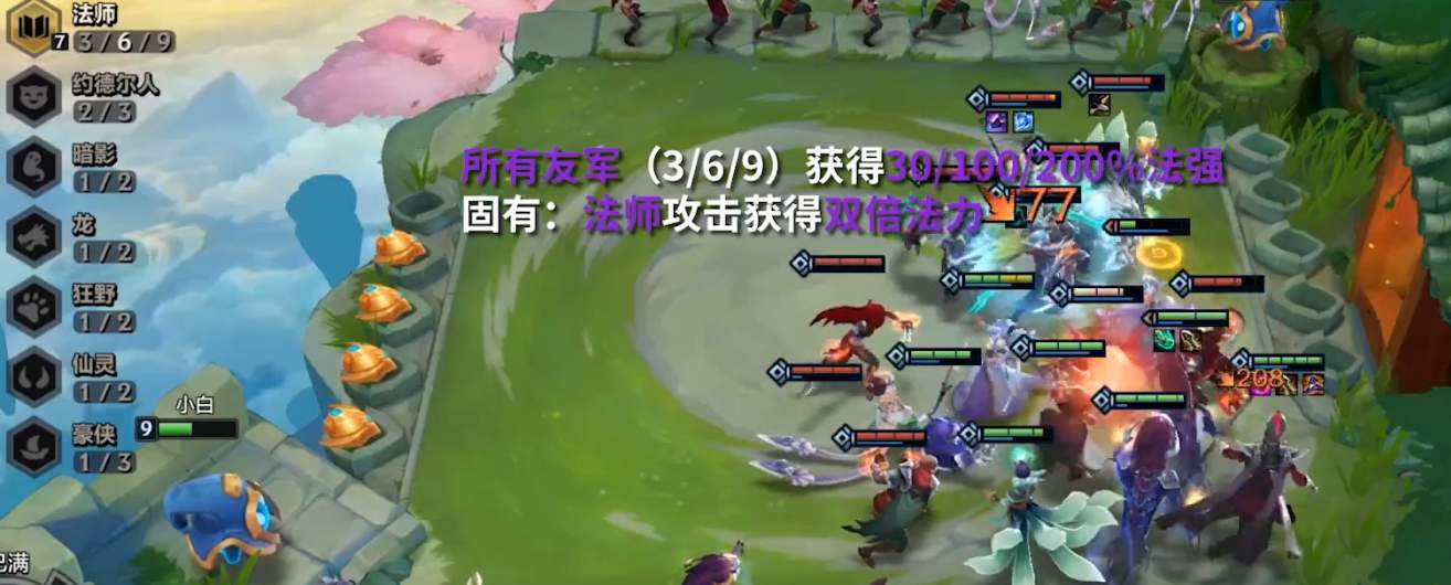 法师是一个3/6/9的羁绊,激活后可以给全体友军提供法强加成,根据羁绊人数角色将获得30/100/200%法强加成,同时属于法师的角色攻击还将获得双倍法力,这个效果即便没有触发羁绊也是可以享受的。