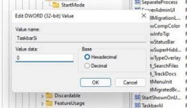3、随后即可编辑“TaskbarSi”数值数据,将数字改成0确定之后就可以强制使用小图标了。