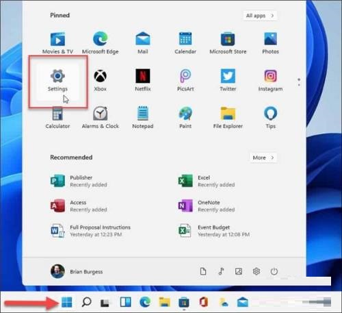 1.如图所示:单击“开始”按钮并单击“设置”图标。或者,您可以使用键盘快捷键Windows键+I直接打开设置。