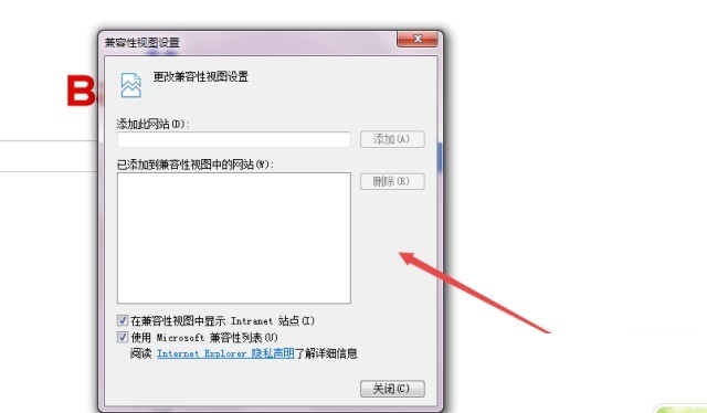 5,然后在输入框中输入要兼容的网址,输入好之后,点击后面的 添加 ,添加好之后,点击 关闭 。