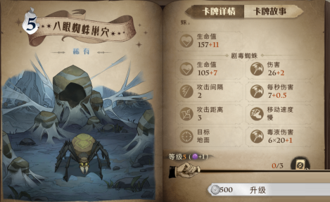 效果:召唤蜘蛛巢穴。巢穴会消耗自身生命值孵化出一只剧毒蜘蛛。剧毒蜘蛛死亡后会在原地留下一滩毒液,巢穴会孵化出一只新的剧毒蜘蛛