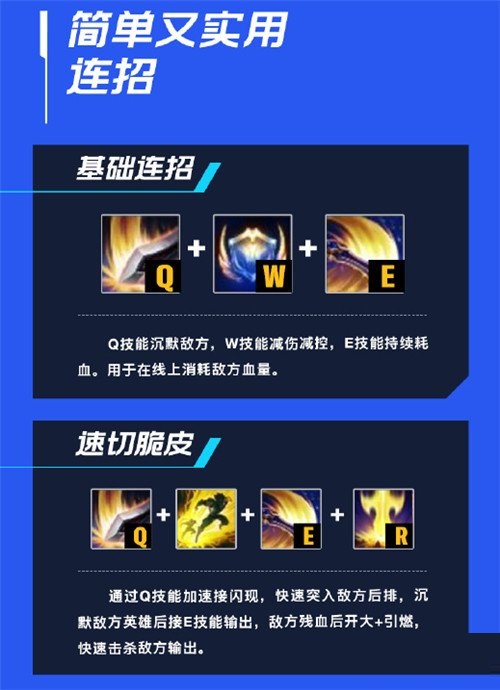 突进敌方后排不止闪现一种方式,也可以通过大招突进敌方后排,开W减伤、减控确保自身安全,再接Q+E+引燃收割敌方后排,最后闪现+Q逃跑。