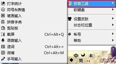 2.右键单击QQ拼音输入法,选择拼音工具一项