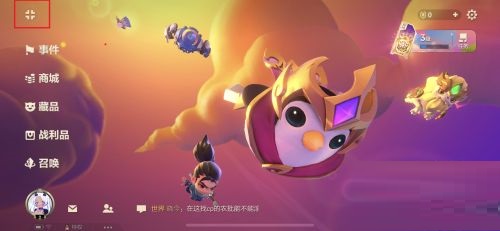 第一步:首先我们先打开金铲铲之战,进入金铲铲之战游戏主界面后,找到左上角的图标并点击进入(如图所示)。