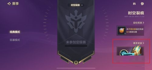 第三步:接着我们进入赛季页面后,可以查看经典模式或者是狂暴模式目前的段位,点击右下角赛季奖励(如图所示)。