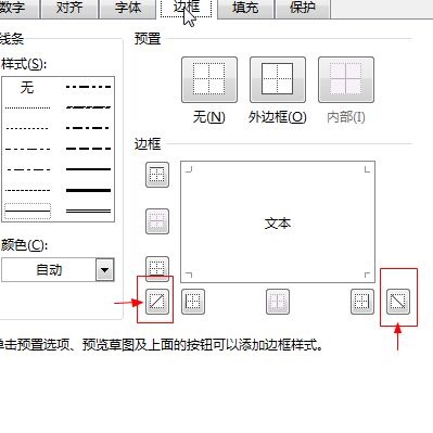 第六步:然后选中箭头所指的对角线边框(如图所示)。