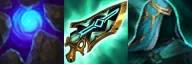 优先小丑神装复活,羊刀,无尽,或者火炮均可,高爆发的装备就行,其次肉装给布隆带狂徒反甲龙牙一类,阿卡丽神装蓝法爆无尽超高爆发直接秒人,辛迪加不缺回血,高回复高爆发。
