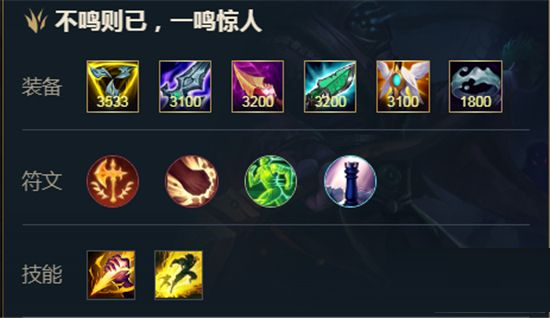出装符合贾克斯的属性,在有稳定输出能力的同时兼顾坦度,cd冷却可观,经济要求不算太高,顺风逆风都能出