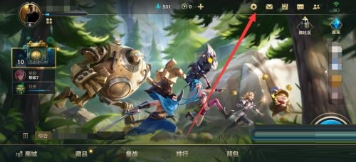 第一步:首先打开英雄联盟手游,进入到游戏的主界面,点击右上角的设置图标(如图所示)。