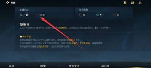 第三步:最后点击进入录像设置界面,将英雄时刻关闭掉就可以关闭录制功能了(如图所示)。