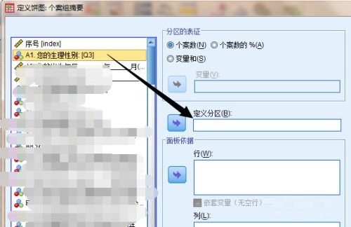 第三步:接着我们把要做饼图的数据添加到定义分区这里(如图所示)。