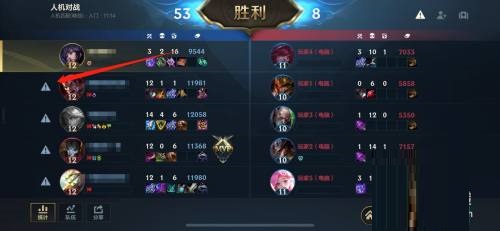 第二步:然后在游戏对局结束后,找到战绩页面右上角的三角感叹号(如图所示)。