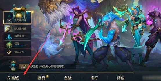 第一步:首先我们打开手机上的英雄联盟手游,进入游戏后,点击商城(如图所示)。