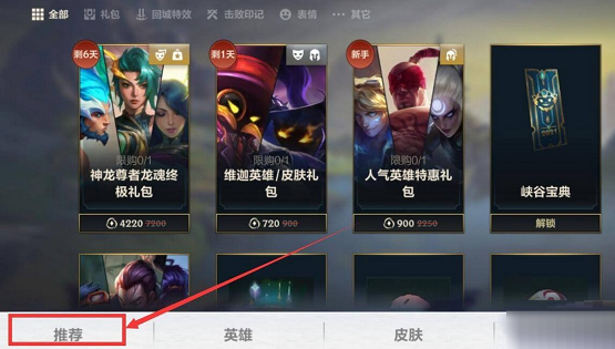 第二步:进入商城页面后,我们在商城中点击推荐选项(如图所示)。