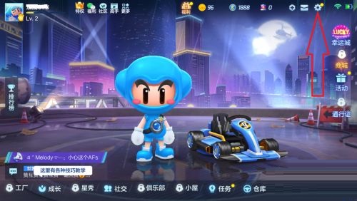 第二步:然后我们进入到跑跑卡丁车游戏主界面,点击右上角的设置图标(如图所示)。
