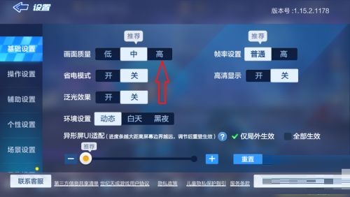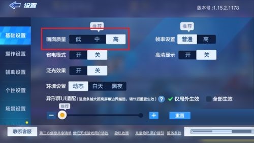 第三步:接着在跑跑卡丁车手游设置中,点击基础设置,将画面质量调整为【高】(如图所示)。
