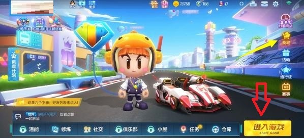 第一步:首先我们打开手机上的跑跑卡丁车手游,点击进入游戏(如图所示)。