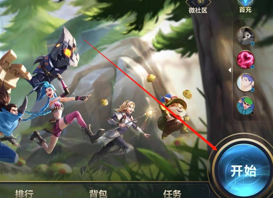 第一步:首先我们打开英雄联盟手游,然后点击右下角的开始(如图所示)。
