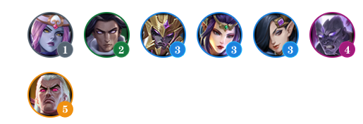 蛛后(1)、迅箭(2)、轩辕(3)、苍鸾(3)、隐娘(3)、焰魂(4)、凤黯(5)