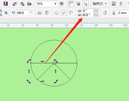 第四步:按键盘上的+号,原地复制一个圆,改角度为45(如图所示)。