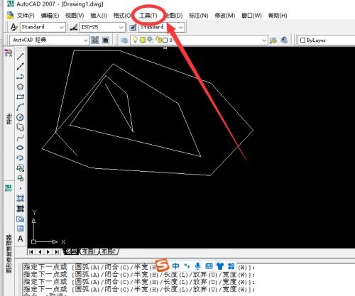 第一步:首先我们打开AutoCAD2007软件。在CAD菜单栏中选择【工具】菜单并点击打开(如图所示)。