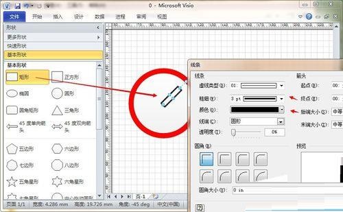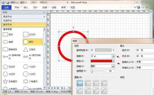 第三步:然后,单击鼠标右键,选择“格式”-“线条”选项,将圆形设置为纯红色,稍微较粗一点,如图所示。