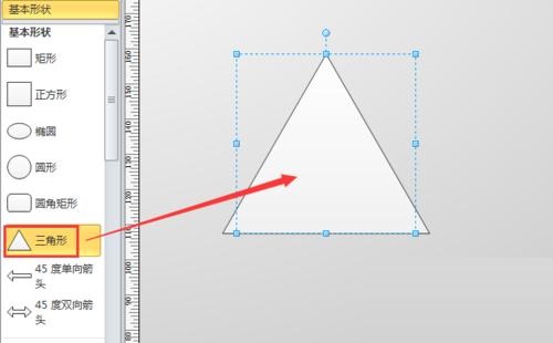 第二步:接着,从左侧形状栏中拖入一个“三角形”,如图所示。