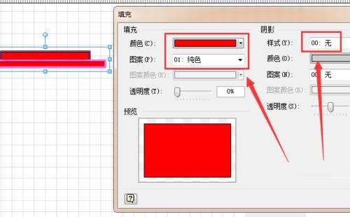 第三步:同时,单击鼠标右键,选择“格式”-“填充”选项,选择“红色”填充,并将阴影调整为“无”,如图所示。