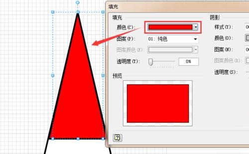 第五步:选中,红色三角形,调整其填充效果为“红色”,如图所示。