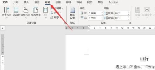 第二步:其次,点击菜单栏中的“布局”按钮(如图所示)。