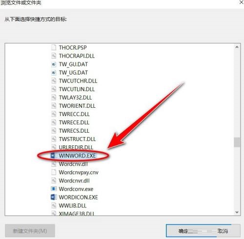 FilesMicrosoft OfficeOffice15下找到Winword.exe点确定(如图所示)。