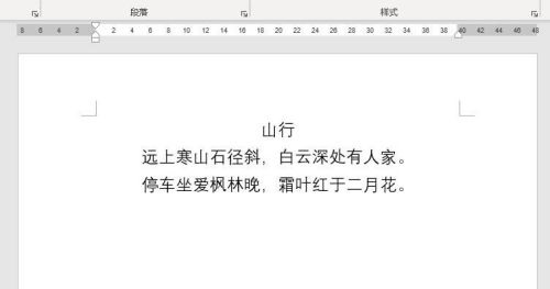 第二步:其次,在新建的文档中输入文本内容,这里以《山行》为例(如图所示)。