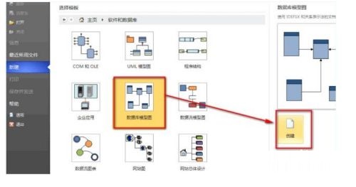 第三步:选择数据库模型图,点击创建,然后成功建立了一个vsd文件(如图所示)。