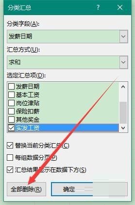 第五步:最后,点击“分类汇总”对话框中的“全部清除”即可清除分类汇总(如图所示)。