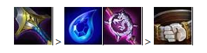保证露露活到最后,生存装必备狂徒。大天使之仗配合卡牌回蓝更快启动。最后一件装根据对局情况选择复活甲或龙牙,增加容错。