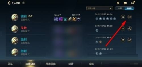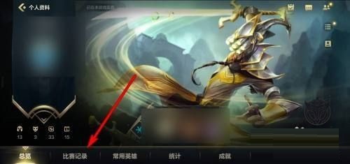 第一步:首先,打开英雄联盟手游,进入游戏界面,点击【比赛记录】按钮(如图所示)。