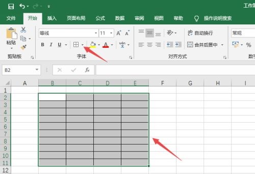 第五步:之后选中表格,然后点击边框按钮边上的下拉箭头(如图所示);