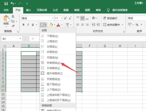 第二步:然后点击边框按钮边上的下拉箭头(如图所示);