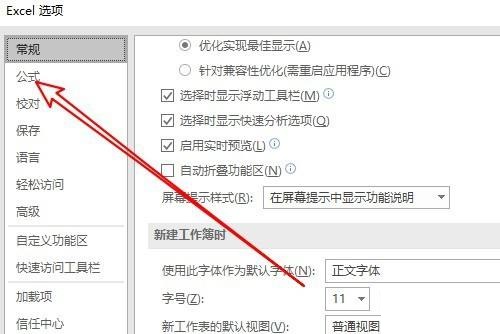 第三步:然后在打开的选项窗口中点击公式的菜单项(如图所示)。