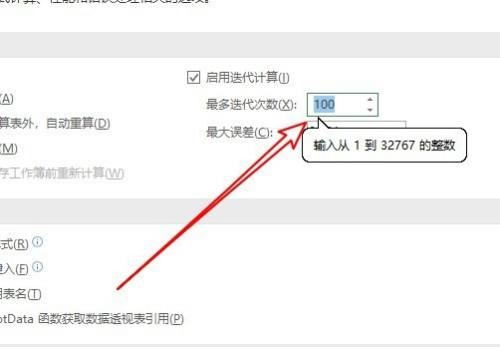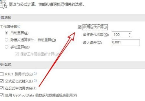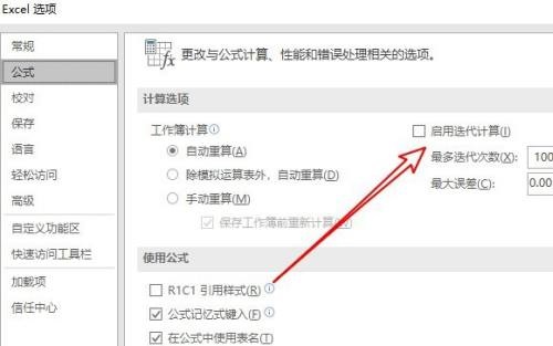 第四步:接着在右侧窗口中找到启用迭代计算的设置项(如图所示)。