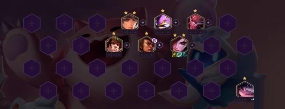 3-5回合6人口,塔姆、金克斯、安妮、卡特琳娜、蔚、奈德丽,搜一波卡,全员都搜到二星,卡特琳娜最好有三件主C装备,站位正常站,争取这一回合赢收菜。