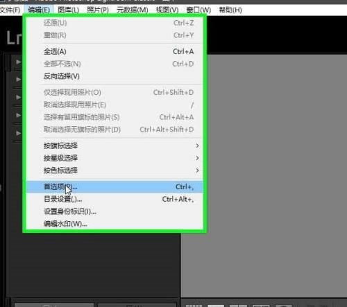 第一步:首先打开lightroom软件,在软件菜单栏上面选择编辑-首选项,打开首选项对话框(如图所示)。