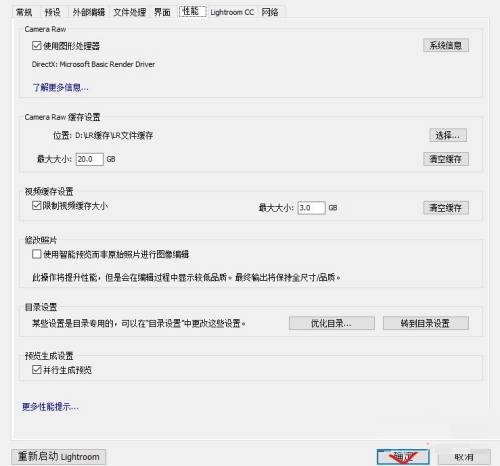 第六步:最后点击下方的“确定”,这样我们更改lightroom的照片缓存路径就完成了。