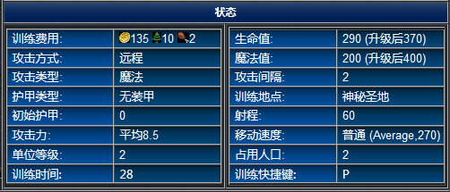 评价:战场支援兵种。牧师拥有心灵之火(自动施放,将单一友军单位的攻击力提高10%,护甲提高25%)、驱散法术(驱散目标身上附加的魔法效果)和治疗术(自动施放,每次恢复单一非机械单位25点生命值)。作为战场支援兵种,牧师拥有的这两种自动施放的法术可以省去玩家很多麻烦,让玩家可以专心进行微操作而不是事必躬亲地施放魔法。驱散法术可以用来摧毁敌人的召唤生物,或者抵消各种魔法效果,而且牧师造价又不高(240金币,2单位补给),出征的时候带上三四个,有百利而无一害。