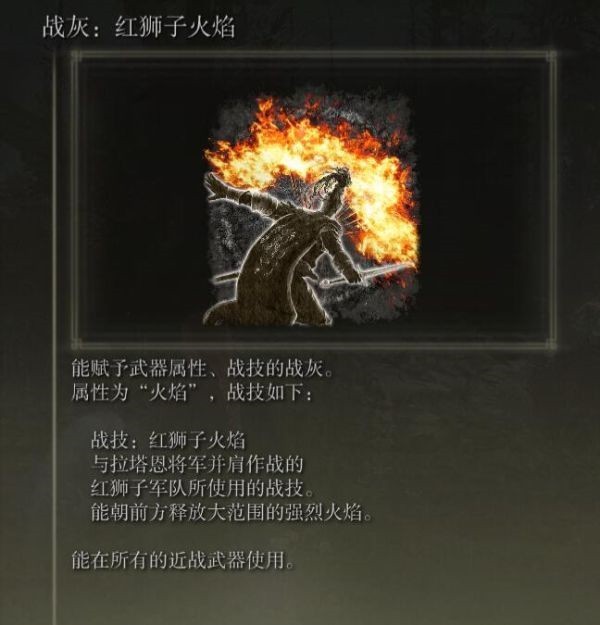 红狮子火焰位置:在宁姆格福和猩红之地的交界处这个赐福点,赐福点旁边有个隐形的按固定路线绕圈的粪金龟,杀掉获得。