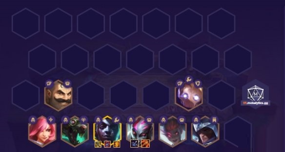过渡推荐:艾克+男刀+诺手+机器组成2保镖2刺客2极客,艾克先给个散件等极客变成装,5人口补任意2星卡都行,有4刺就上4刺,如果刺客牌没来先用发明家,大头和EZ都能带装打工。
